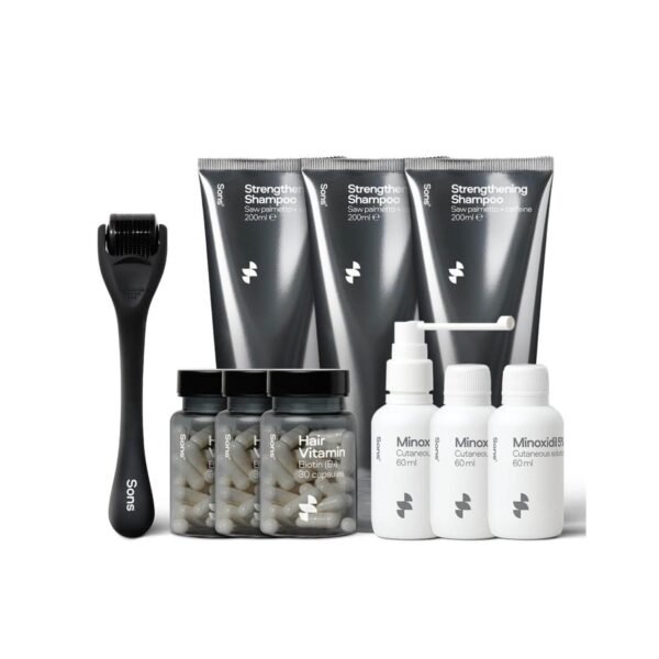 Sons Complete Hair Loss Treatment - Minoxidil 5%, Biotin, & DHT Blocking Shampoo + Dermaroller, 3 Month Supply