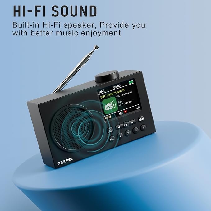 - DAB/DAB+ & FM digital radio: The portable DAB+ radio from Mycket offers you razor-sharp and clear audio quality, so you can enjoy your favourite radio stations anywhere. DAB offers improved quality of digital radio and allows you to access a range of digital radio stations. On the clear colour LCD screen, you know exactly what you are hearing.