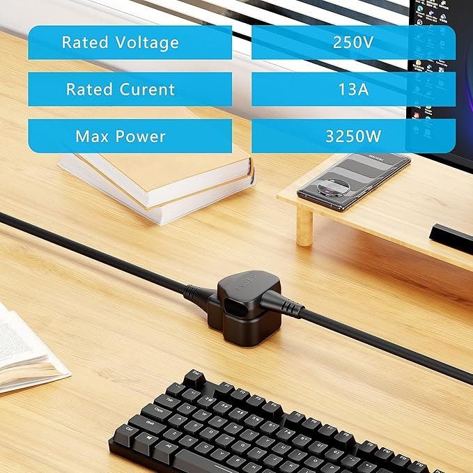 - Built-in 13A Fuse 13 Amp extension cord: The integrated fuse protects devices from overcurrent and keeps users safe from electrical accidents.