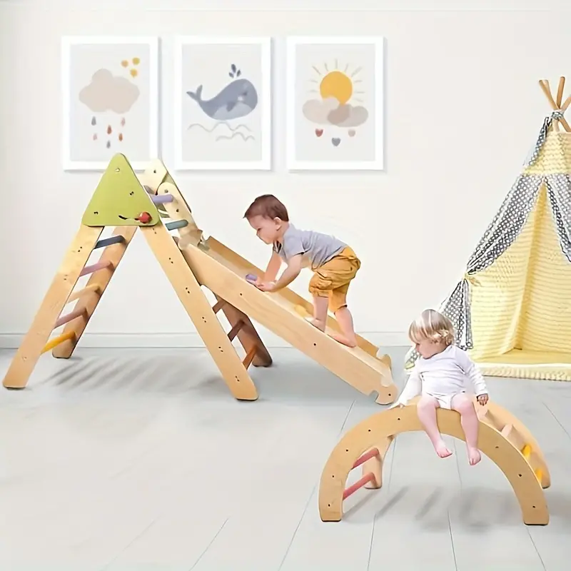 Designed with convenience in mind, the climbing set is foldable, allowing it to be easily stored when not in use, making it ideal for small living spaces. The durable wooden construction ensures that it can withstand active play while adhering to strict safety standards. With endless play configurations, this climbing gym allows toddlers to explore at their own pace, promoting confidence, independence, and imaginative play. The LOL-FUN Pikler Triangle Set provides parents with a safe and enriching indoor activity option, and it’s perfect for building a Montessori-inspired play space. It’s an ideal gift for parents seeking a well-rounded, developmentally supportive play structure.