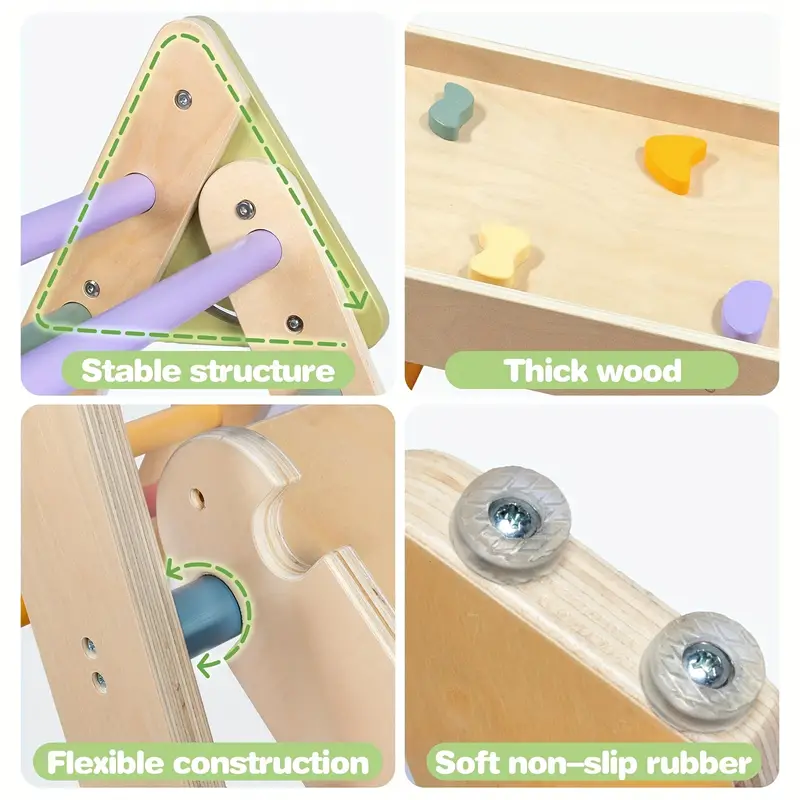 The LOL-FUN Pikler Triangle Set is a thoughtfully designed Montessori climbing toy that supports early childhood development by encouraging safe, self-guided play. Perfect for toddlers aged 0-3, this 5-in-1 indoor playground includes a sturdy triangle climber, an adjustable ramp, and a smooth arch, each crafted from high-quality, child-safe wood in cheerful mixed colors. This versatile set not only entertains but also promotes physical and cognitive development by fostering balance, coordination, and motor skills in young children.