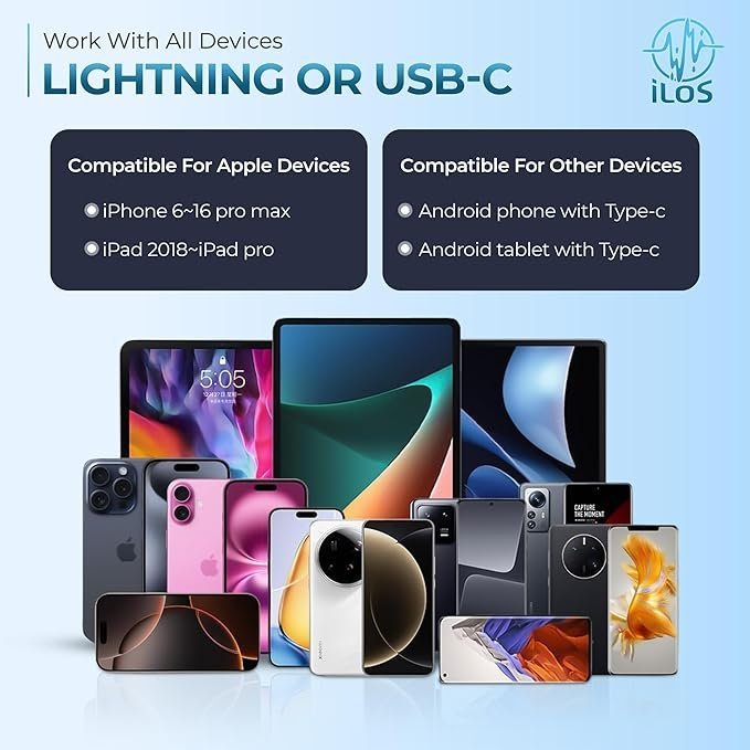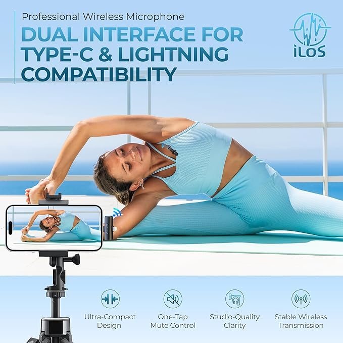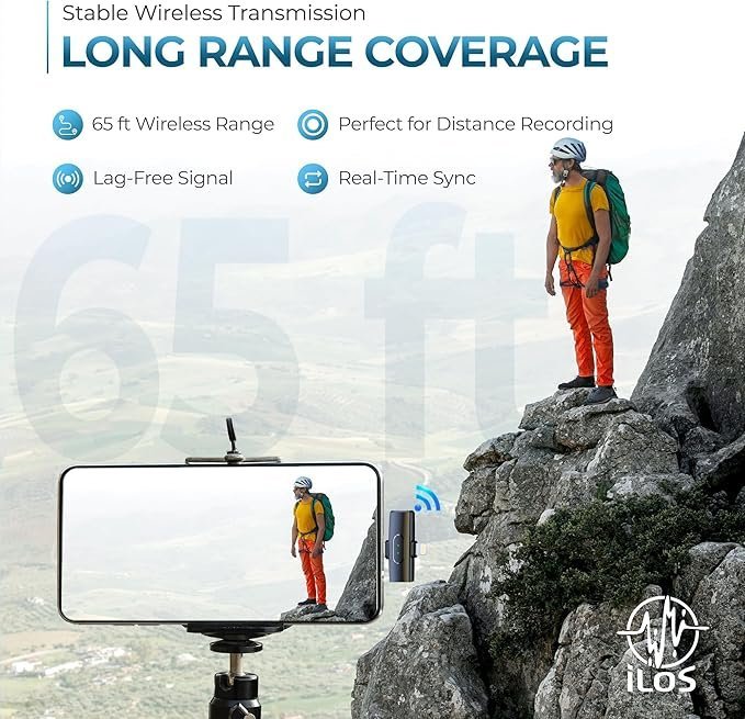 - Dual Interface – Universal Compatibility: This wireless lavalier microphone supports both iOS and Android devices using included USB-C and Lightning connectors—no app or Bluetooth needed! Whether you’re using a smartphone, iPhone, or tablet, this plug and play microphone delivers instant setup. Compatible with Android external microphone and iPhone lavalier microphone users seeking a seamless, no-hassle setup.